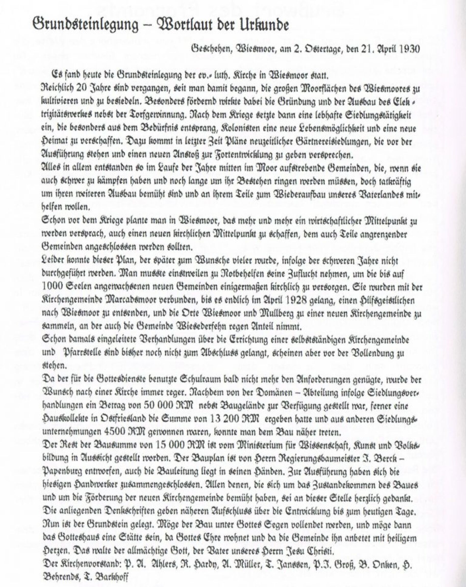 Wortlaut der Grundsteinurkunde