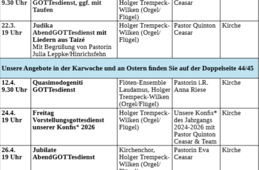 Unsere Gottesdienste - eine Übrsicht